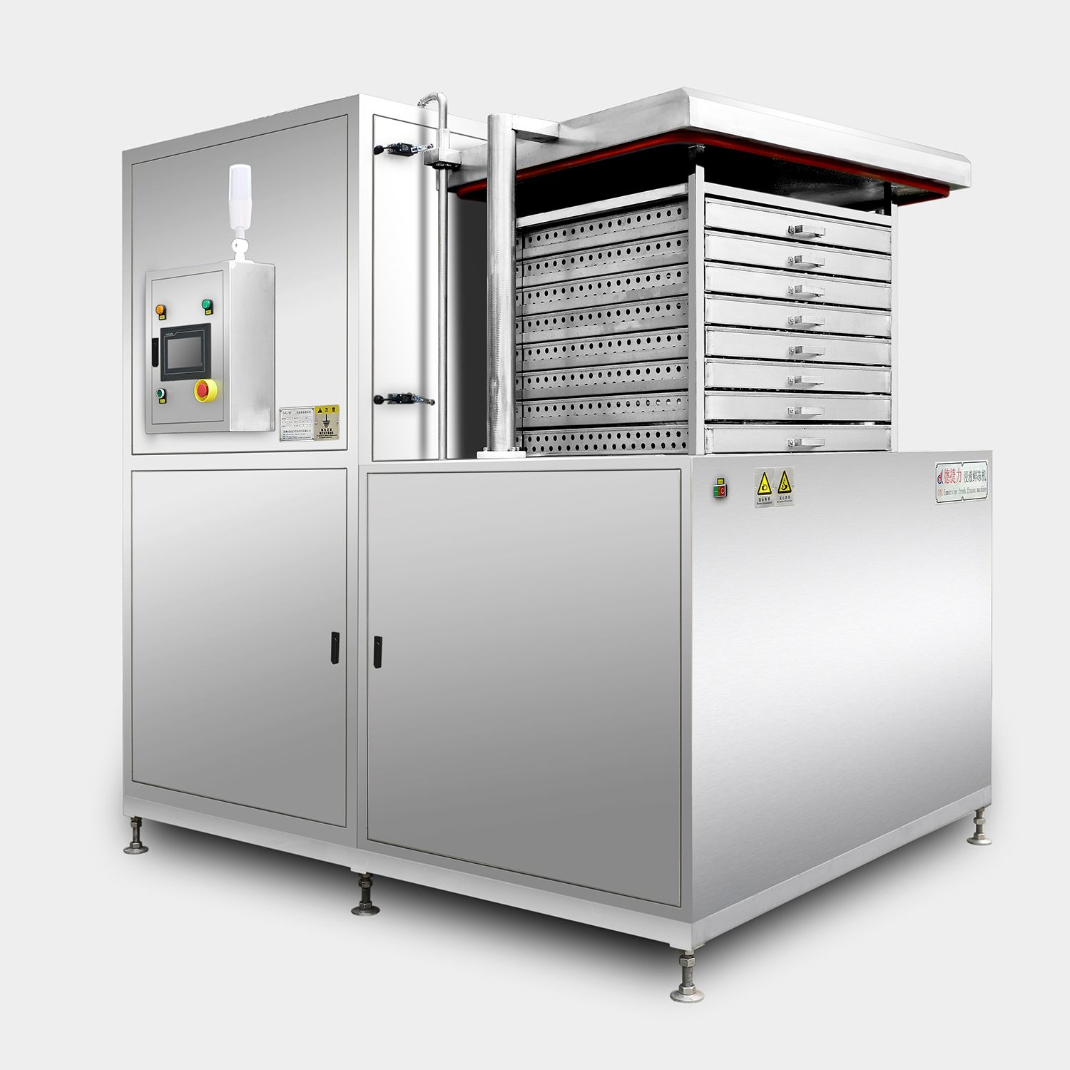 德捷力速凍機(jī)設(shè)備搭載的可編程邏輯控制器 (PLC) ,友好的人機(jī)智能操控界面,操作簡(jiǎn)單便捷??深A(yù)設(shè)不同生產(chǎn)工藝模式,不同產(chǎn)品生產(chǎn)工藝可隨意切換,并確保每批次生產(chǎn)工藝一致性。