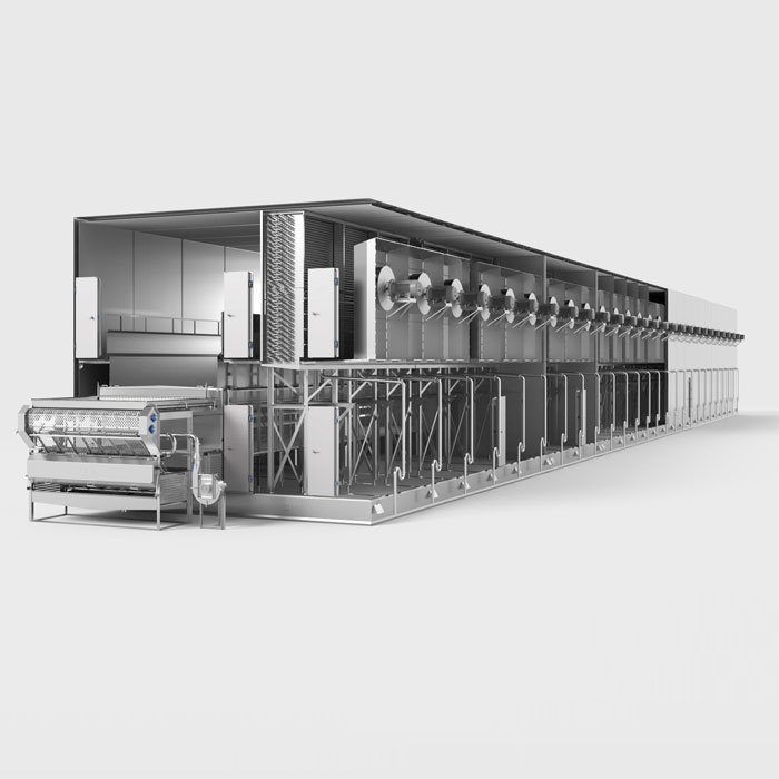 隧道式速凍機(jī)采用模塊化垂直升降設(shè)計(jì),靈活性高,便于根據(jù)產(chǎn)能需要進(jìn)行拼接變化,更易于維護(hù)和保養(yǎng)。