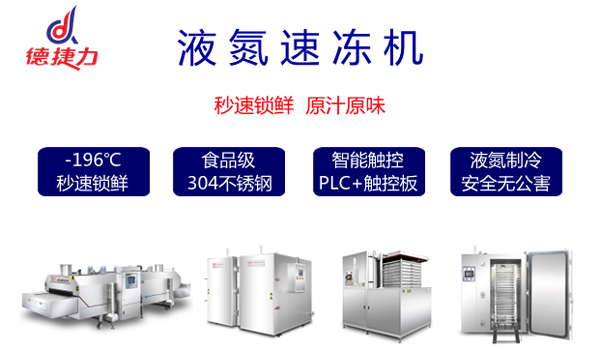 如今,德捷力研發(fā)的液氮速凍設備包含隧道式液氮速凍機、液氮速凍柜、浸液式速凍機等多種類型,而得益于先進的液氮冷凍工藝以及控溫、液氮款式多樣性等及加工設備的性能、精確度、生產(chǎn)效率等都有所保障,是廣大的速凍食品生產(chǎn)企業(yè)最優(yōu)選擇。