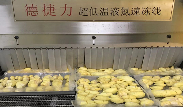 因此速凍榴蓮是最常見(jiàn)也最受歡迎的榴蓮保鮮方式,而德捷力生產(chǎn)的液氮榴蓮速凍機(jī)保鮮的核心是秒速鮮凍。通過(guò)-196℃的液氮進(jìn)行不低于100分鐘的快速冷凍,經(jīng)過(guò)液氮冷凍的榴蓮包裝后會(huì)被馬上轉(zhuǎn)移到-18℃的冷凍庫(kù)儲(chǔ)存,裝箱和發(fā)貨都持續(xù)在-18℃的環(huán)境中完成,經(jīng)過(guò)一段時(shí)間的運(yùn)輸,直到進(jìn)入我國(guó)家的市場(chǎng)銷(xiāo)售。