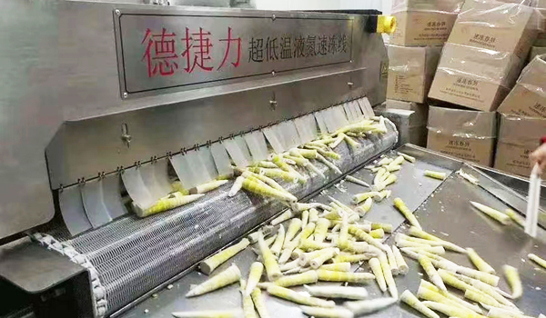 采用德捷力液氮速凍機(jī)的竹筍能夠較長(zhǎng)時(shí)間地保持新鮮度,延長(zhǎng)了竹筍的保質(zhì)期。這對(duì)于竹筍產(chǎn)地與市場(chǎng)存在距離、物流需求較高的地區(qū)尤為重要,可以使竹筍在運(yùn)輸和銷(xiāo)售過(guò)程中不易腐敗,提供了更長(zhǎng)的銷(xiāo)售窗口。 在竹筍市場(chǎng)競(jìng)爭(zhēng)中能夠?yàn)樯a(chǎn)商提供更具競(jìng)爭(zhēng)力的產(chǎn)品,滿(mǎn)足消費(fèi)者對(duì)優(yōu)質(zhì)竹筍的需求。