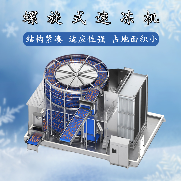 一般來說,在保證水餃的質(zhì)量和產(chǎn)量的前提下,企業(yè)通??紤]如何更好地控制成本,比如車間場地空間小,減少租金支出;同樣單位時間內(nèi)提高產(chǎn)量等等,而螺旋速凍機正好契合了這種生產(chǎn)條件。從相關(guān)人員那里了解到,螺旋速凍機主要采用螺旋式(層層疊加)輸送產(chǎn)品,相比其它產(chǎn)品,占地面積小,可以為企業(yè)節(jié)約一定的場地租金成本。另外,因為層層疊加的方式,每層都可以擺放水餃,所以凍結(jié)效率高,產(chǎn)量大??梢哉f,螺旋速凍機是目前速凍水餃生產(chǎn)企業(yè)應用較為廣泛的一種速凍設備。